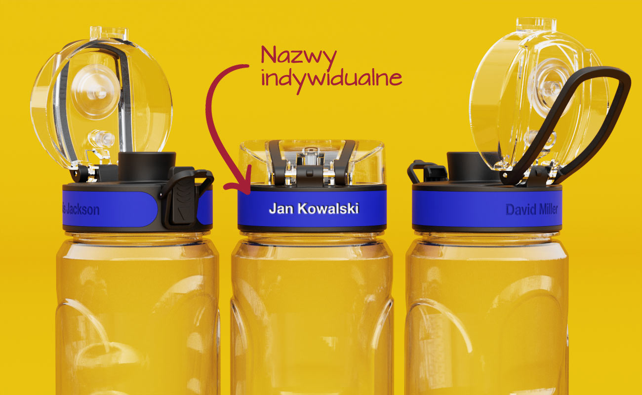 Dzięki opcji indywidualnego graweru imienia ma się pewność, że takie znakowanie pozostanie na produkcie na zawsze. Jest to idealne rozwiązanie dla klubów sportowych i szkół - pozwala uniknąć pomieszania butelek czy kubków podczas treningów czy zawodów. Taka unikalna nazwa będzie idealnie uzupełniać Twojego logo na danym kubku/butelce.